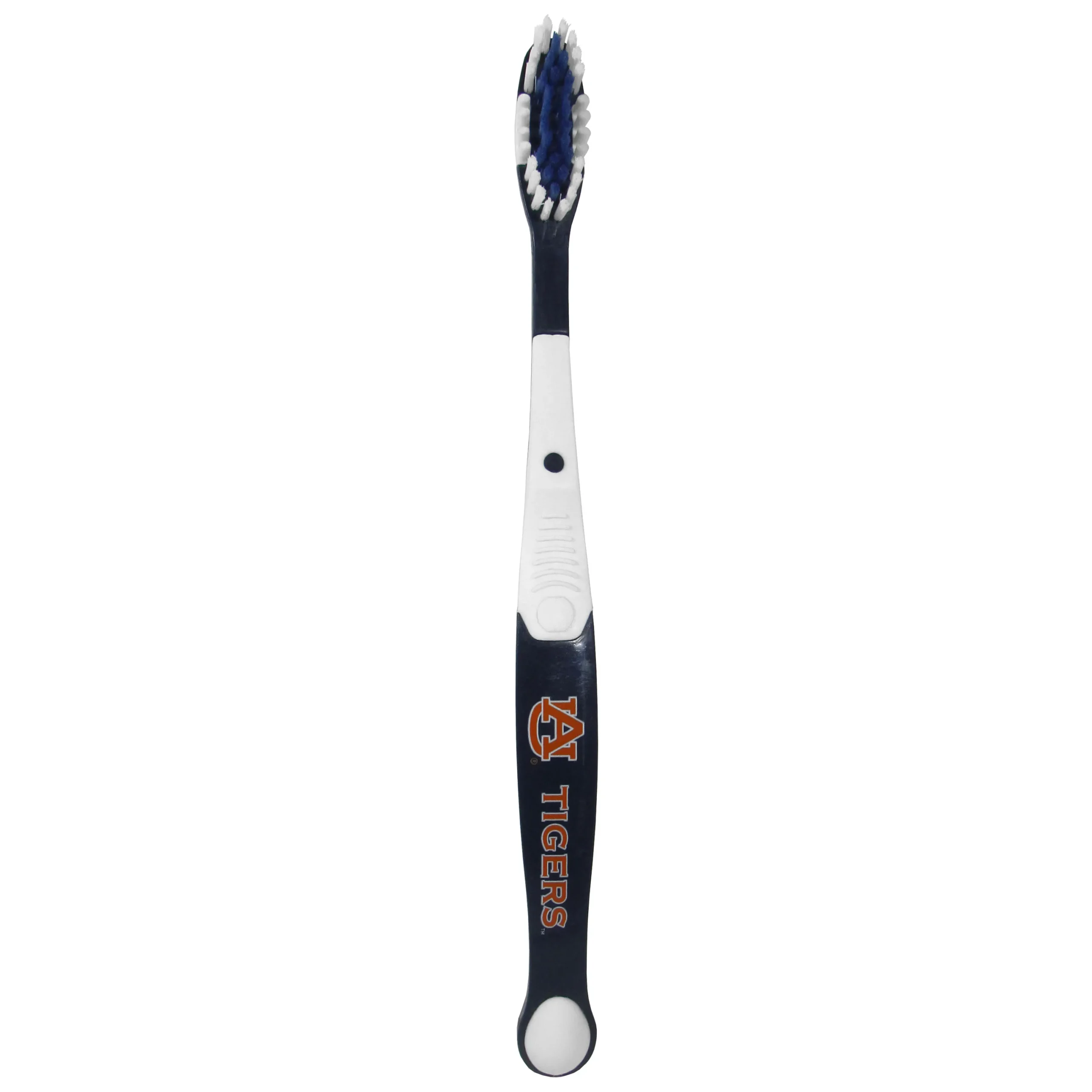 Why have a boring old toothbrush when you can have the MVP of toothbrushes! This cool Auburn Tigers toothbrush features crisp team graphics on a team colored toothbrush. This is no simple novelty item though, it is a high-quality hygiene device with soft bristles for a gentle clean and rubber gum massagers on the sides of the bristles.