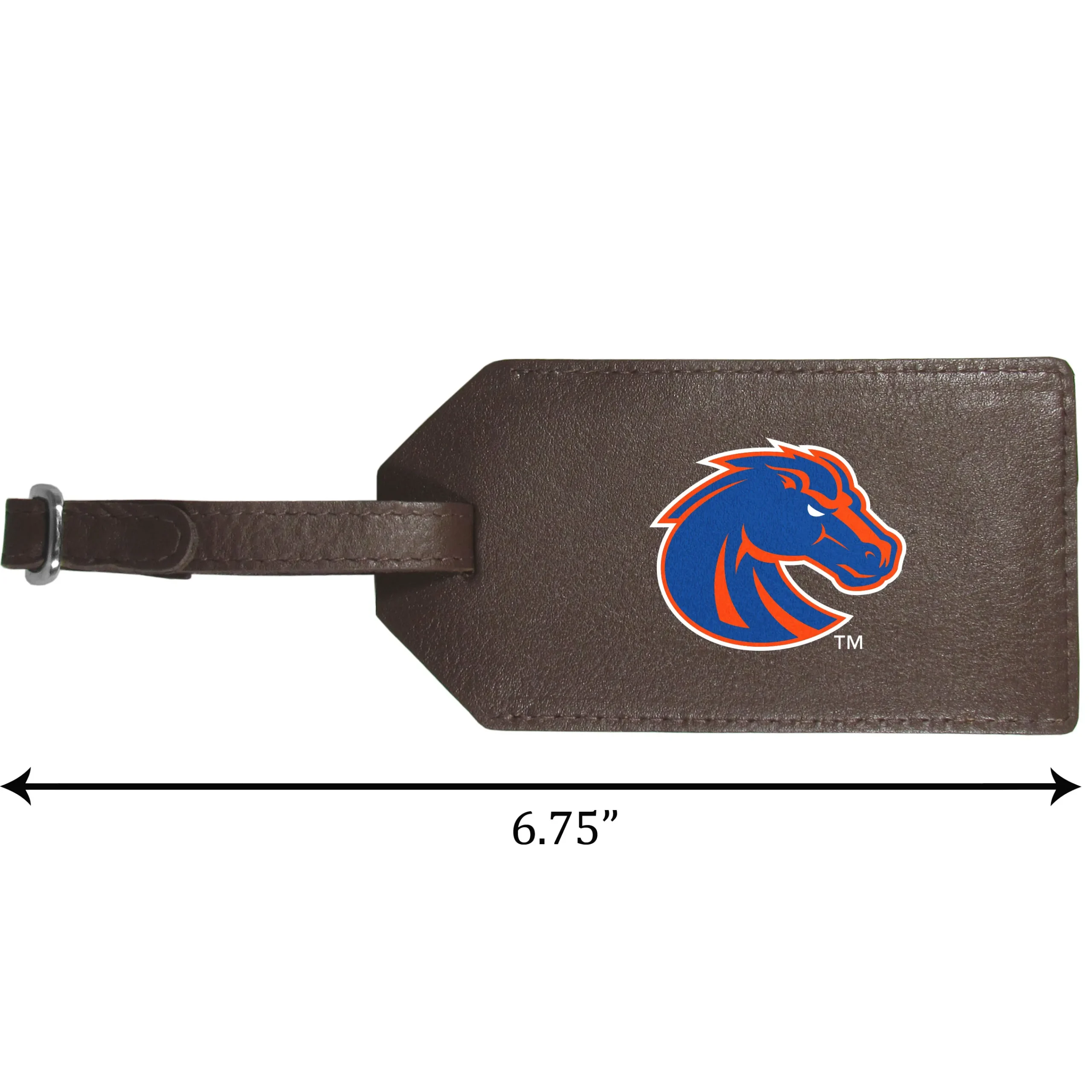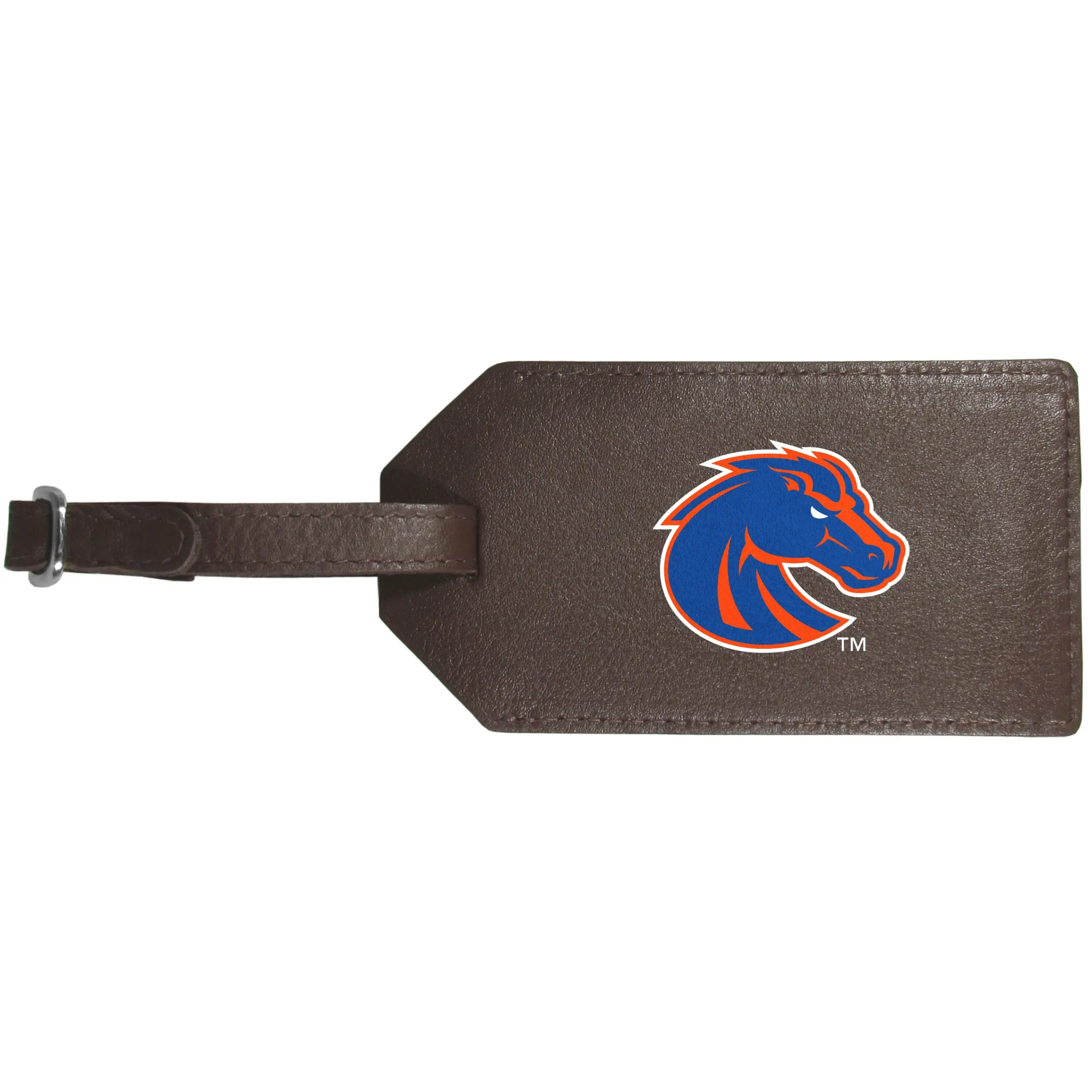 Everyone has had that moment at the airport of trying to find your suitcase among the sea of luggage. This quality leather luggage tag takes the frustration out of that process by providing an easy to spot tag that is attractive and shows off your team pride. The soft leather tag has a slide-up address tab and bright digitally printed Boise St. Broncos logo. This is the perfect travel accessory for the die-hard fan!