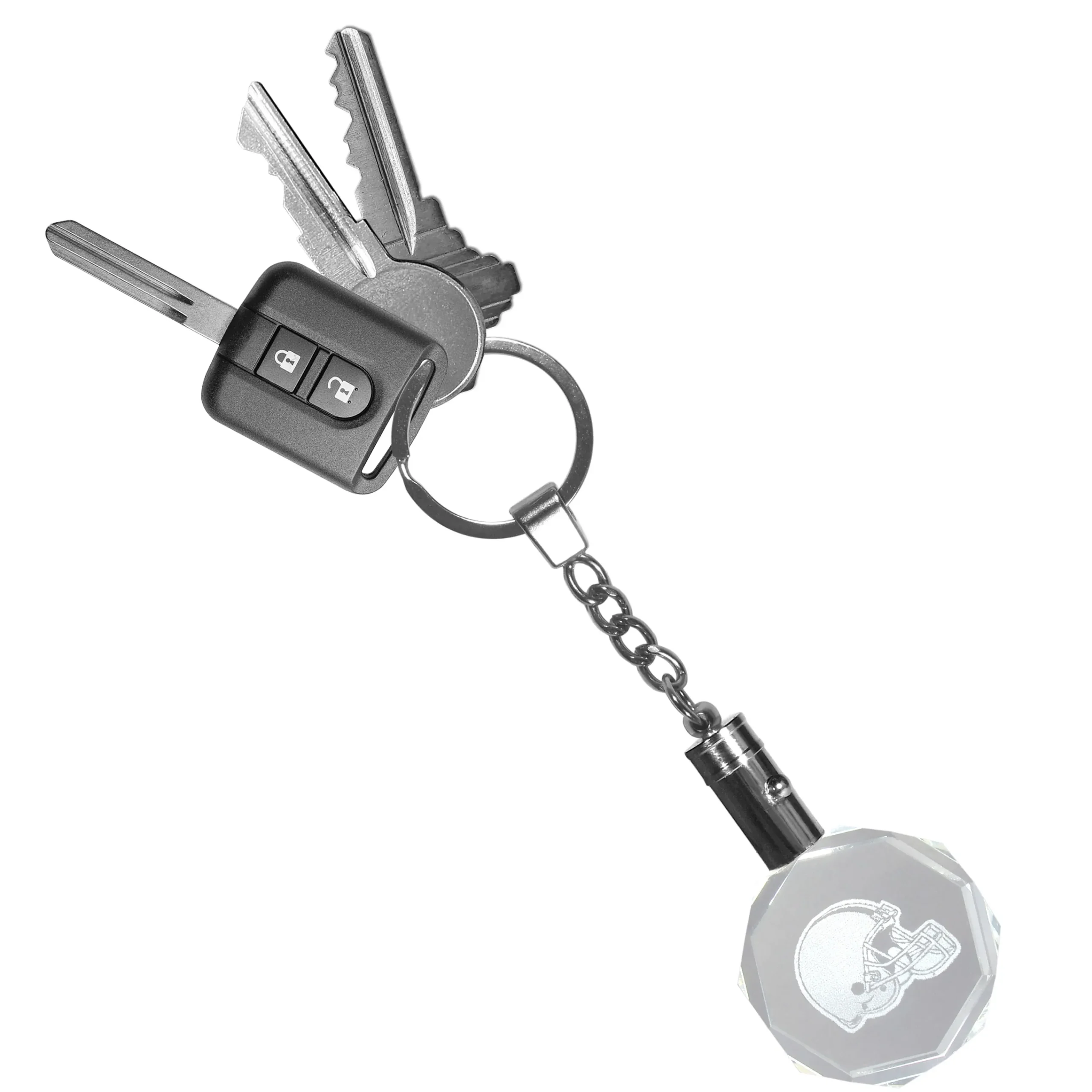 This beautiful crystal key chain has a laser etched Cleveland Browns logo in the center that is eye-catching on it’s own but this has the added benefit of light! Push the button on the side and the entire beveled crystal fob lights up showing off the logo is great detail.