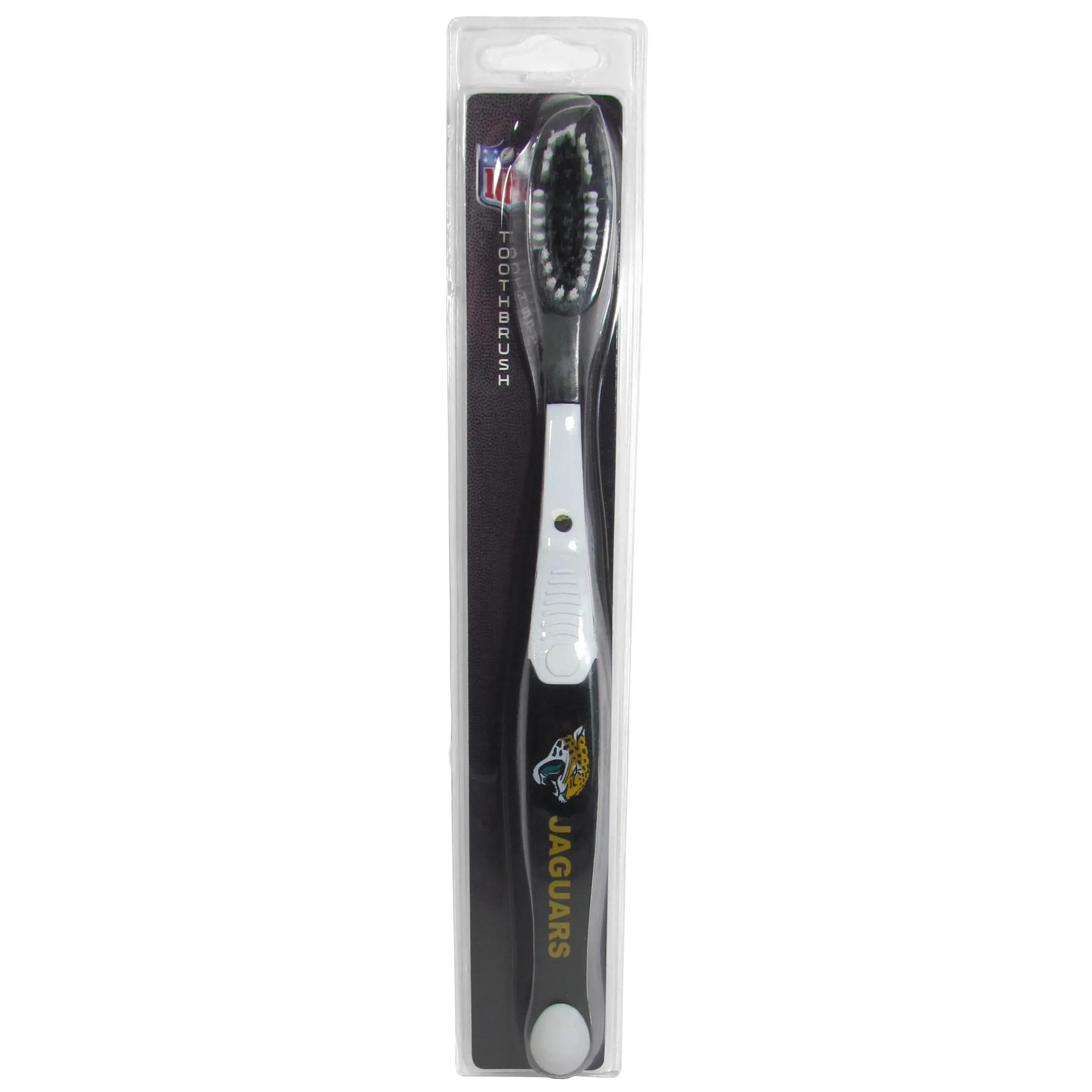 Why have a boring old toothbrush when you can have the MVP of toothbrushes! This cool Jacksonville Jaguars toothbrush features crisp team graphics on a team colored toothbrush. This is no simple novelty item though, it is a high-quality hygiene device with soft bristles for a gentle clean and rubber gum massagers on the sides of the bristles.