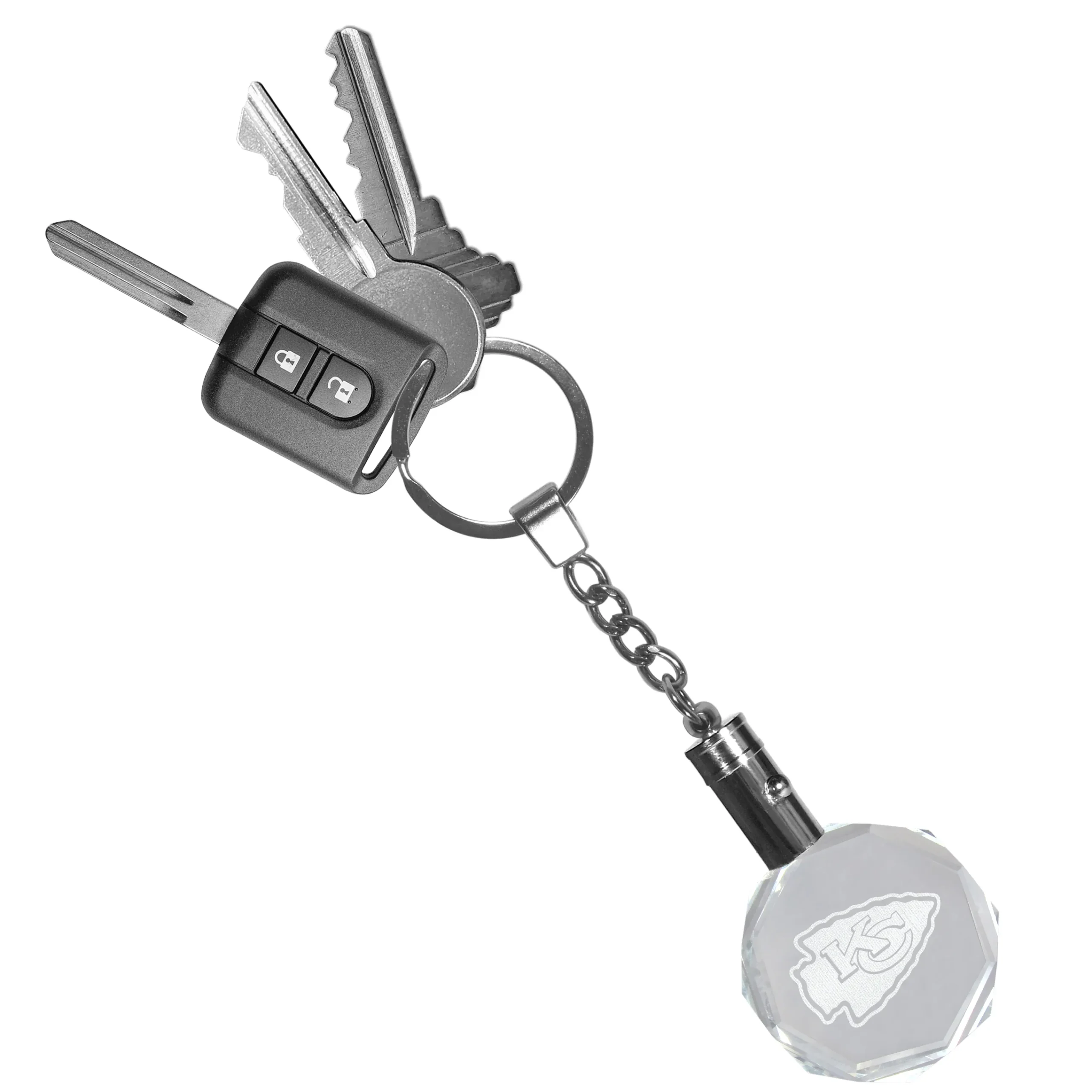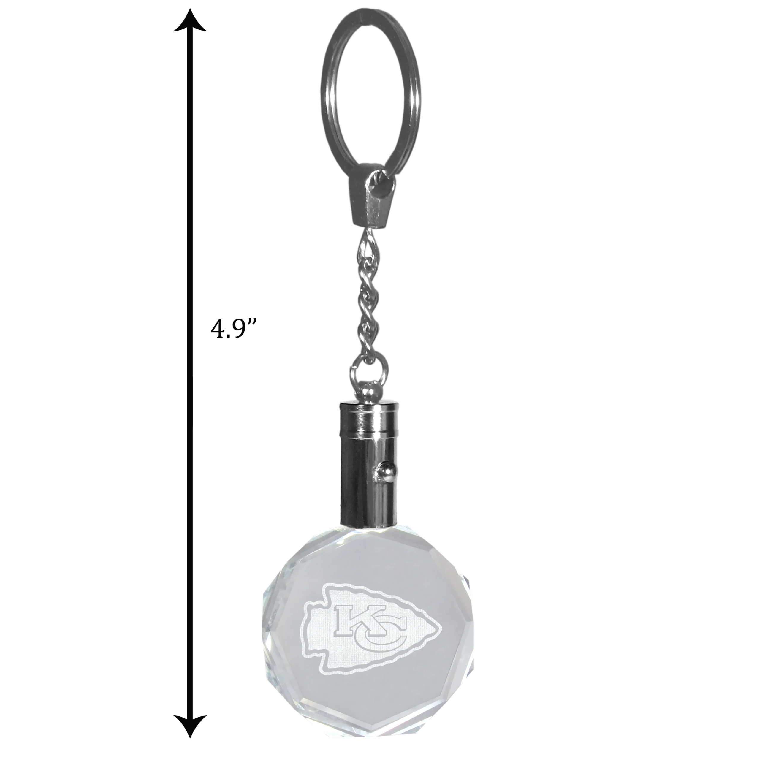 This beautiful crystal key chain has a laser etched Kansas City Chiefs logo in the center that is eye-catching on it’s own but this has the added benefit of light! Push the button on the side and the entire beveled crystal fob lights up showing off the logo is great detail.
