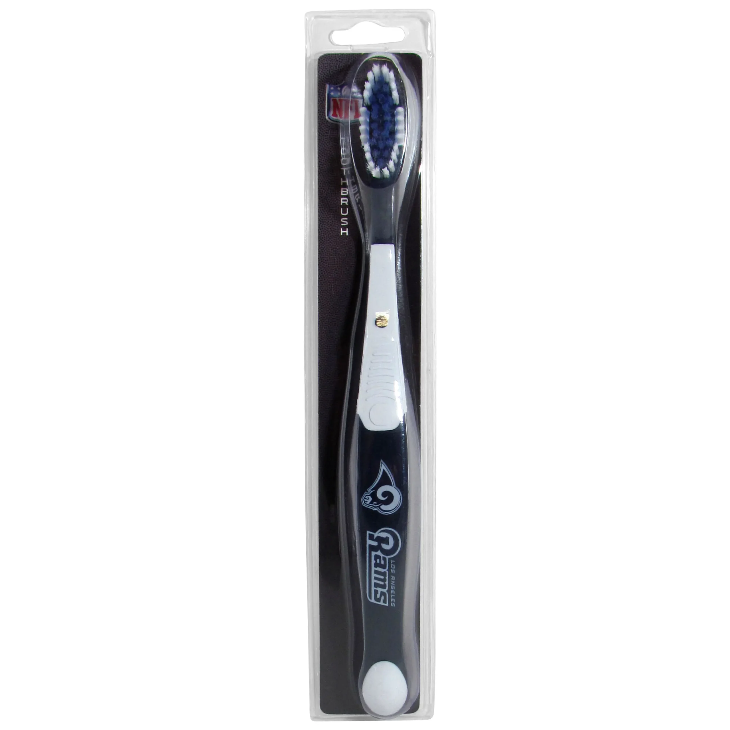 Why have a boring old toothbrush when you can have the MVP of toothbrushes! This cool Los Angeles Rams toothbrush features crisp team graphics on a team colored toothbrush. This is no simple novelty item though, it is a high-quality hygiene device with soft bristles for a gentle clean and rubber gum massagers on the sides of the bristles.