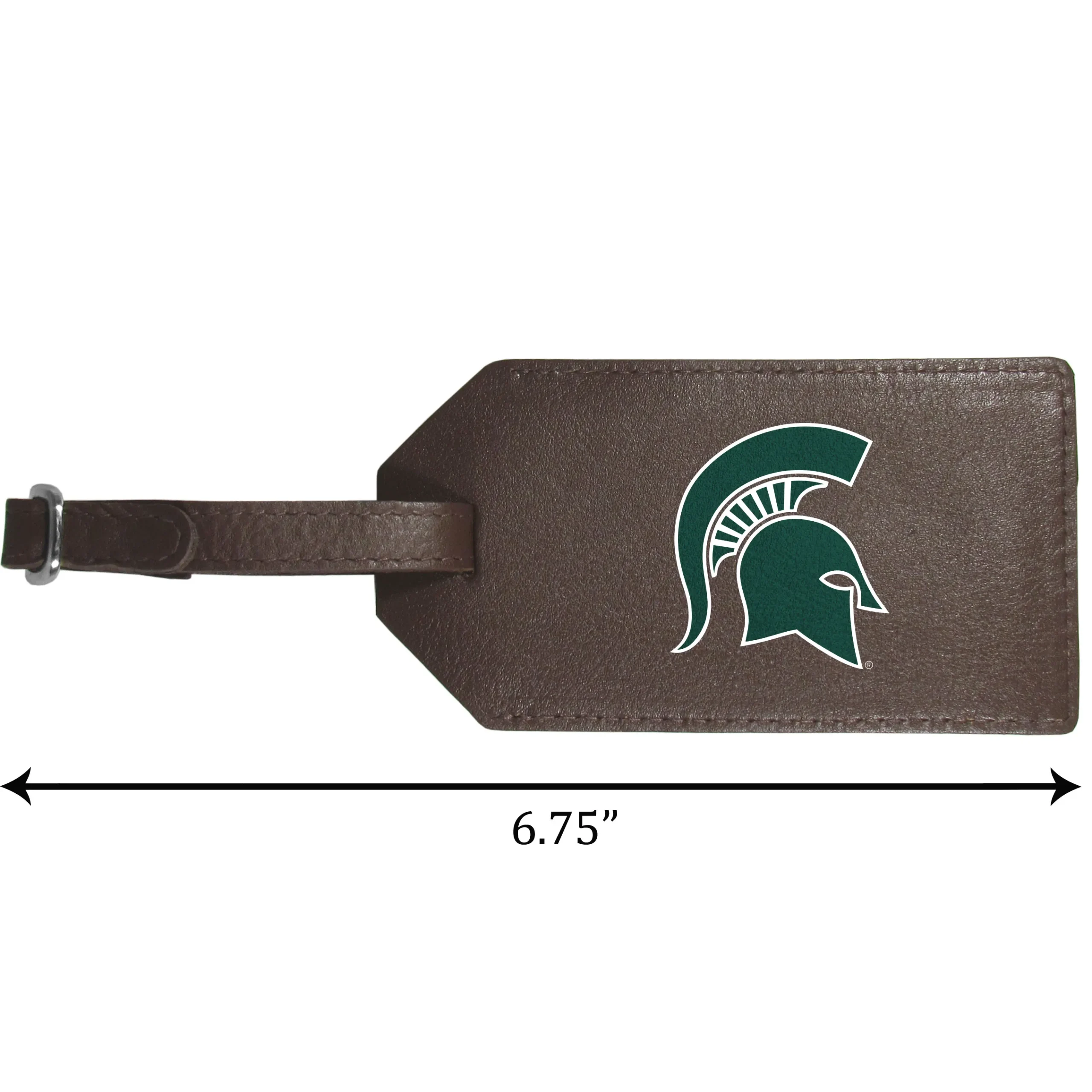 Everyone has had that moment at the airport of trying to find your suitcase among the sea of luggage. This quality leather luggage tag takes the frustration out of that process by providing an easy to spot tag that is attractive and shows off your team pride. The soft leather tag has a slide-up address tab and bright digitally printed Michigan St. Spartans logo. This is the perfect travel accessory for the die-hard fan!