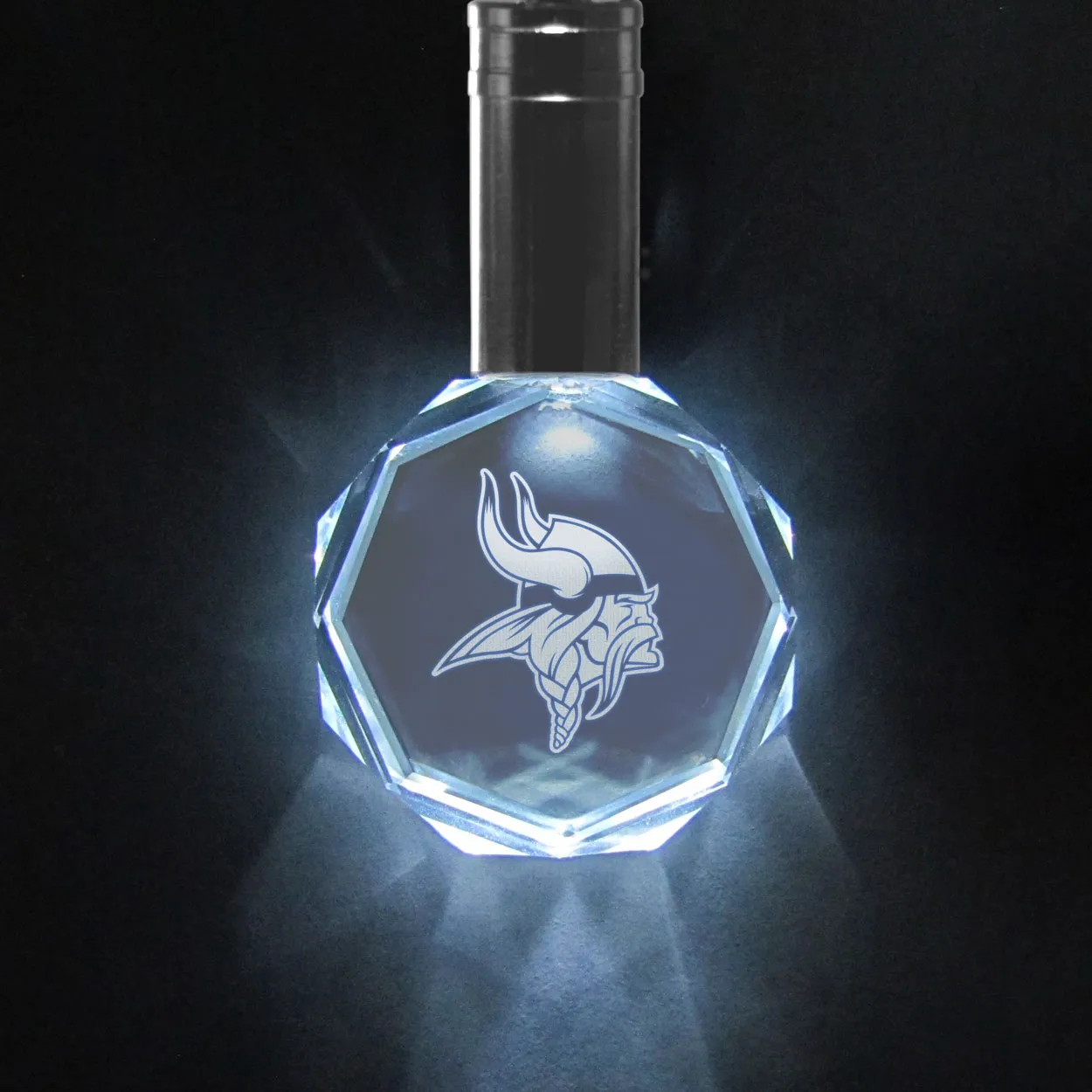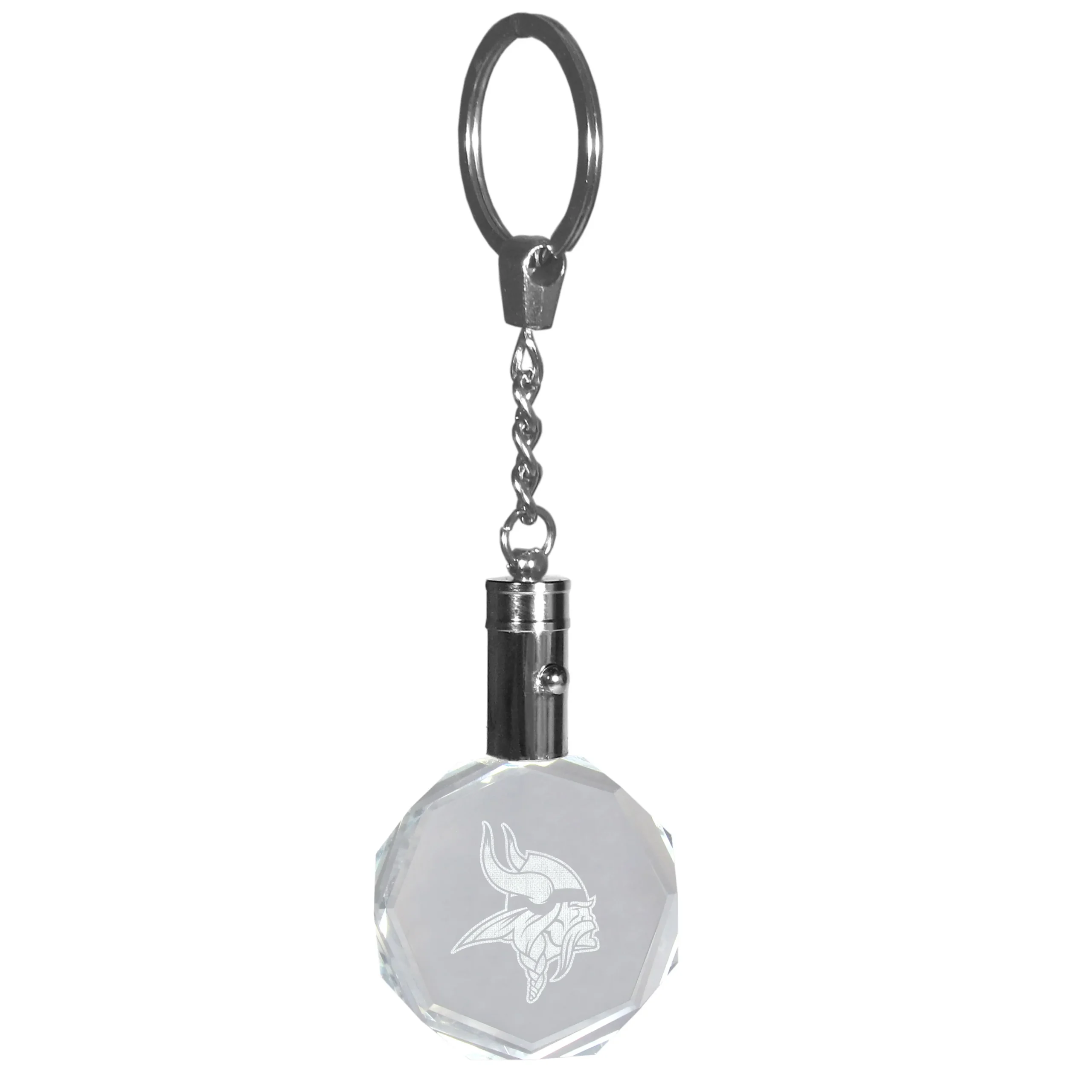 This beautiful crystal key chain has a laser etched Minnesota Vikings logo in the center that is eye-catching on it’s own but this has the added benefit of light! Push the button on the side and the entire beveled crystal fob lights up showing off the logo is great detail.