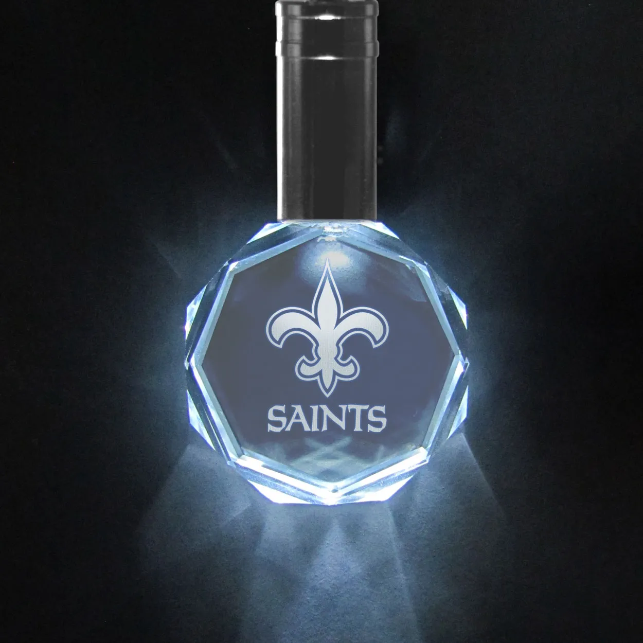 This beautiful crystal key chain has a laser etched New Orleans Saints logo in the center that is eye-catching on it’s own but this has the added benefit of light! Push the button on the side and the entire beveled crystal fob lights up showing off the logo is great detail.