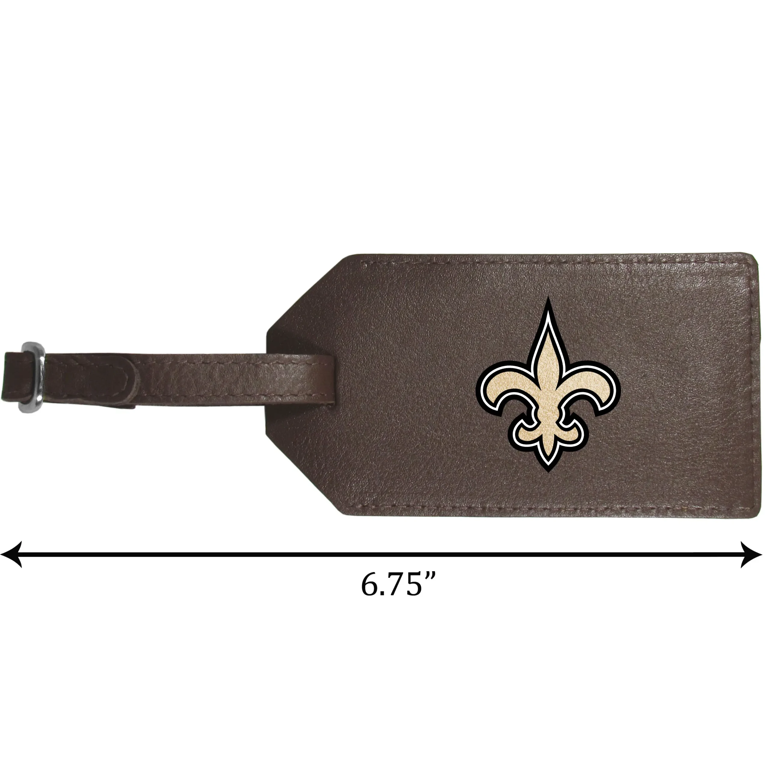 Everyone has had that moment at the airport of trying to find your suitcase among the sea of luggage. This quality leather luggage tag takes the frustration out of that process by providing an easy to spot tag that is attractive and shows off your team pride. The soft leather tag has a slide-up address tab and bright digitally printed New Orleans Saints logo. This is the perfect travel accessory for the die-hard fan!