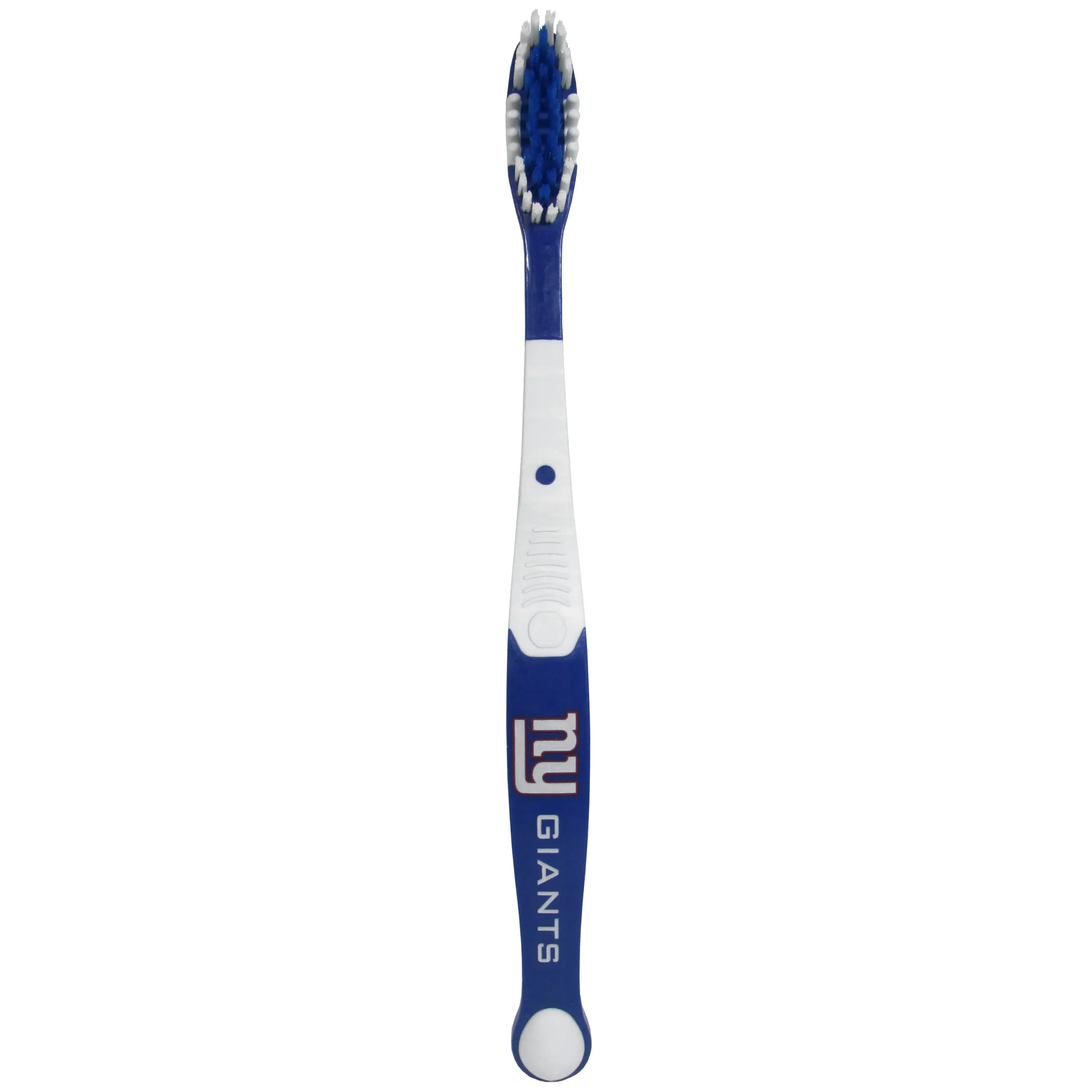 Why have a boring old toothbrush when you can have the MVP of toothbrushes! This cool New York Giants toothbrush features crisp team graphics on a team colored toothbrush. This is no simple novelty item though, it is a high-quality hygiene device with soft bristles for a gentle clean and rubber gum massagers on the sides of the bristles.