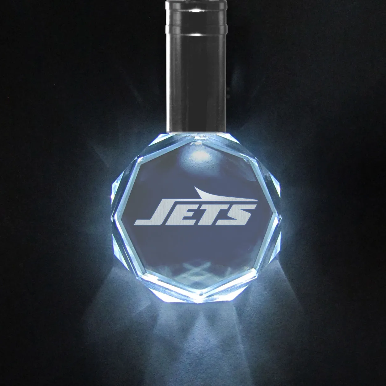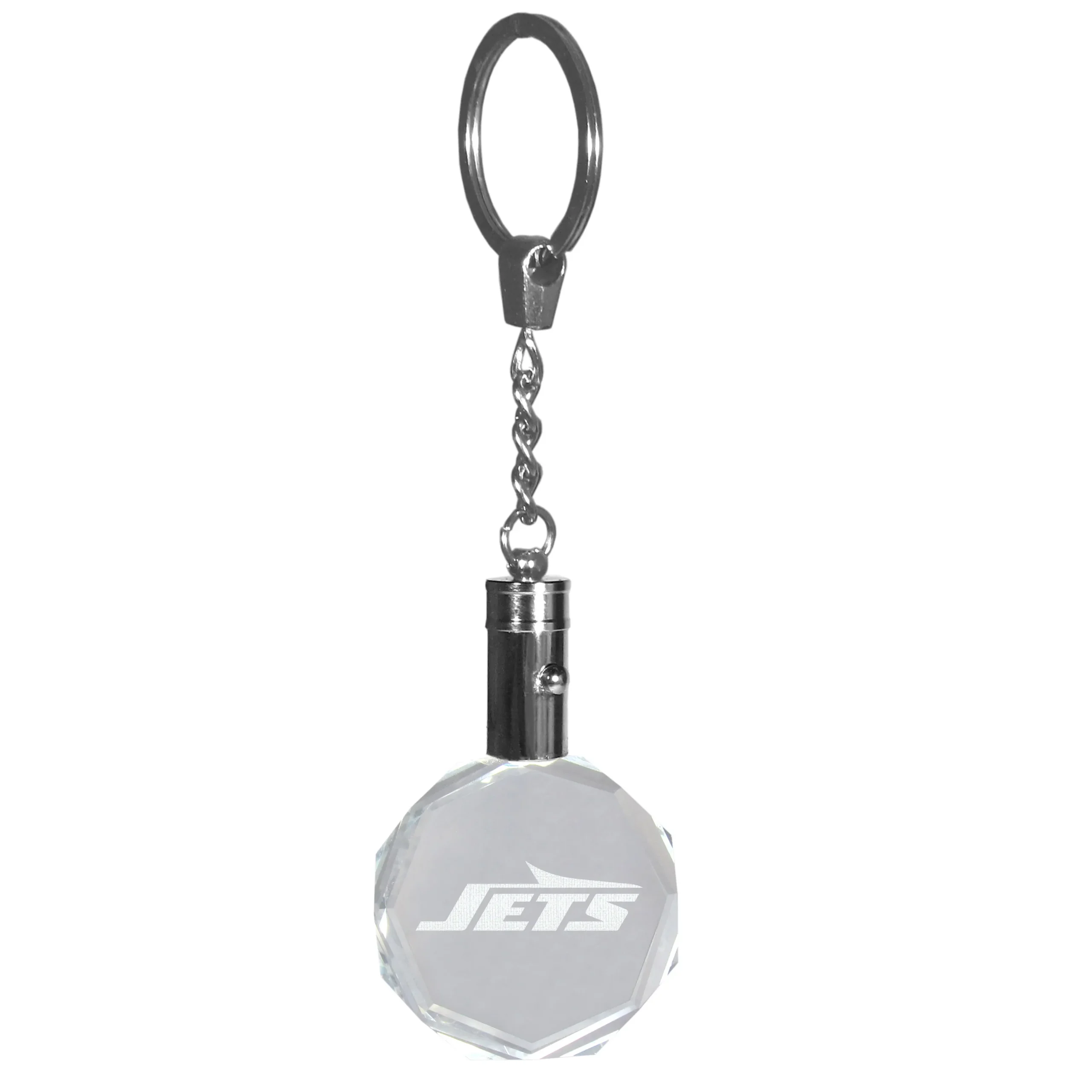 This beautiful crystal key chain has a laser etched New York Jets logo in the center that is eye-catching on it’s own but this has the added benefit of light! Push the button on the side and the entire beveled crystal fob lights up showing off the logo is great detail.