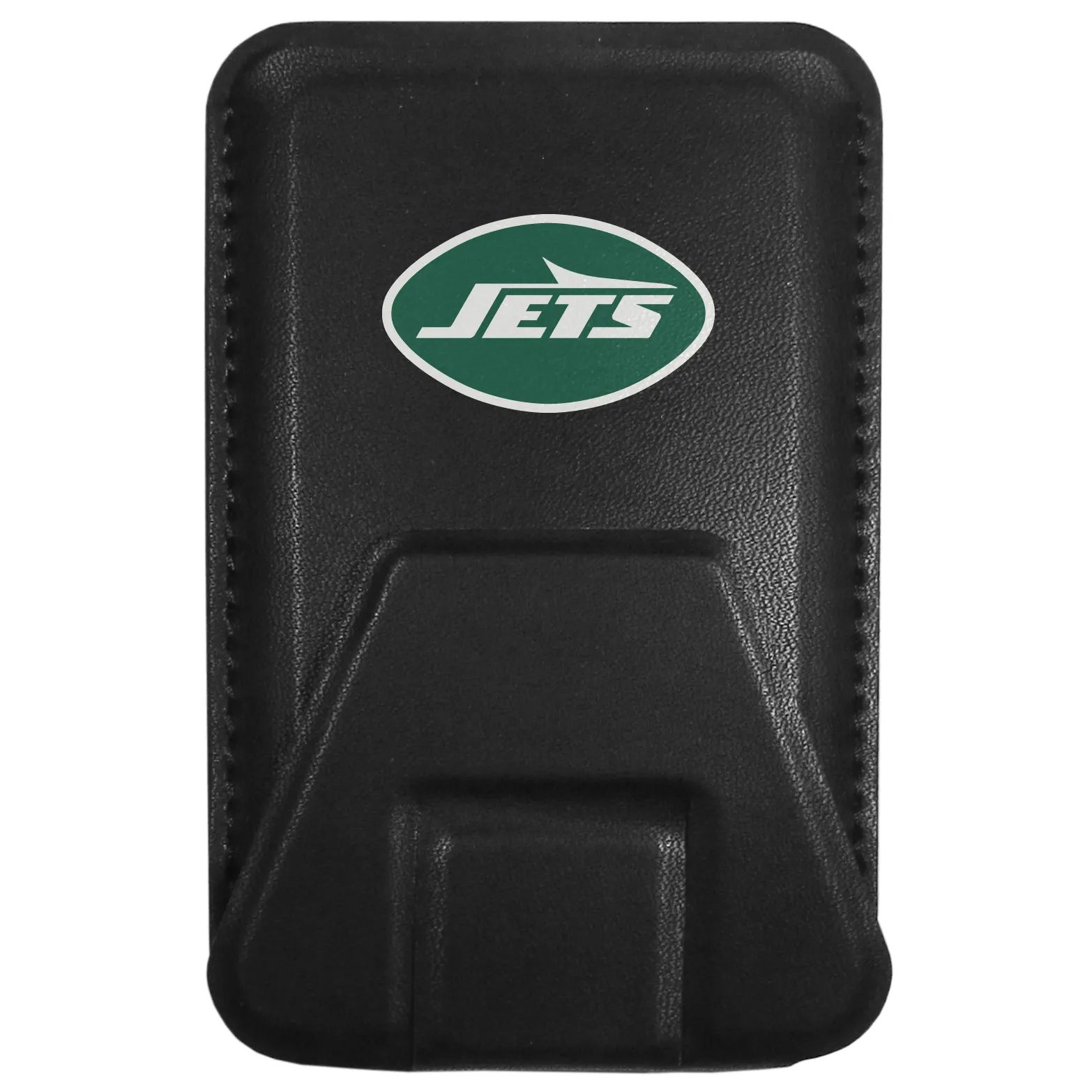 The wallet features strong built-in magnets that allow it to effortlessly snap into place on the back of your phone and an easy slide phone stand built right in! On the front of the versatile wallet is an expertly printed New York Jets logo so you can carry your team pride with you!