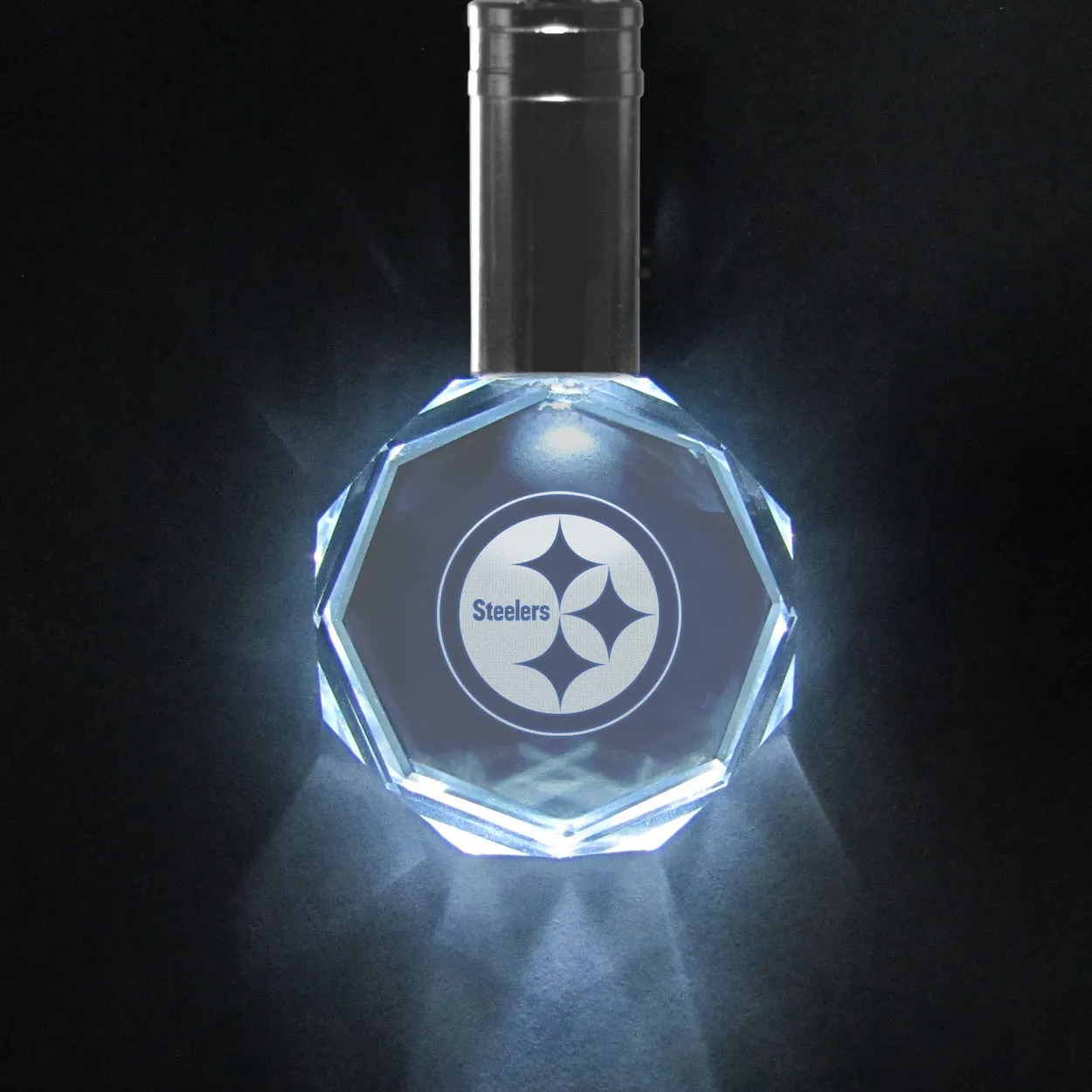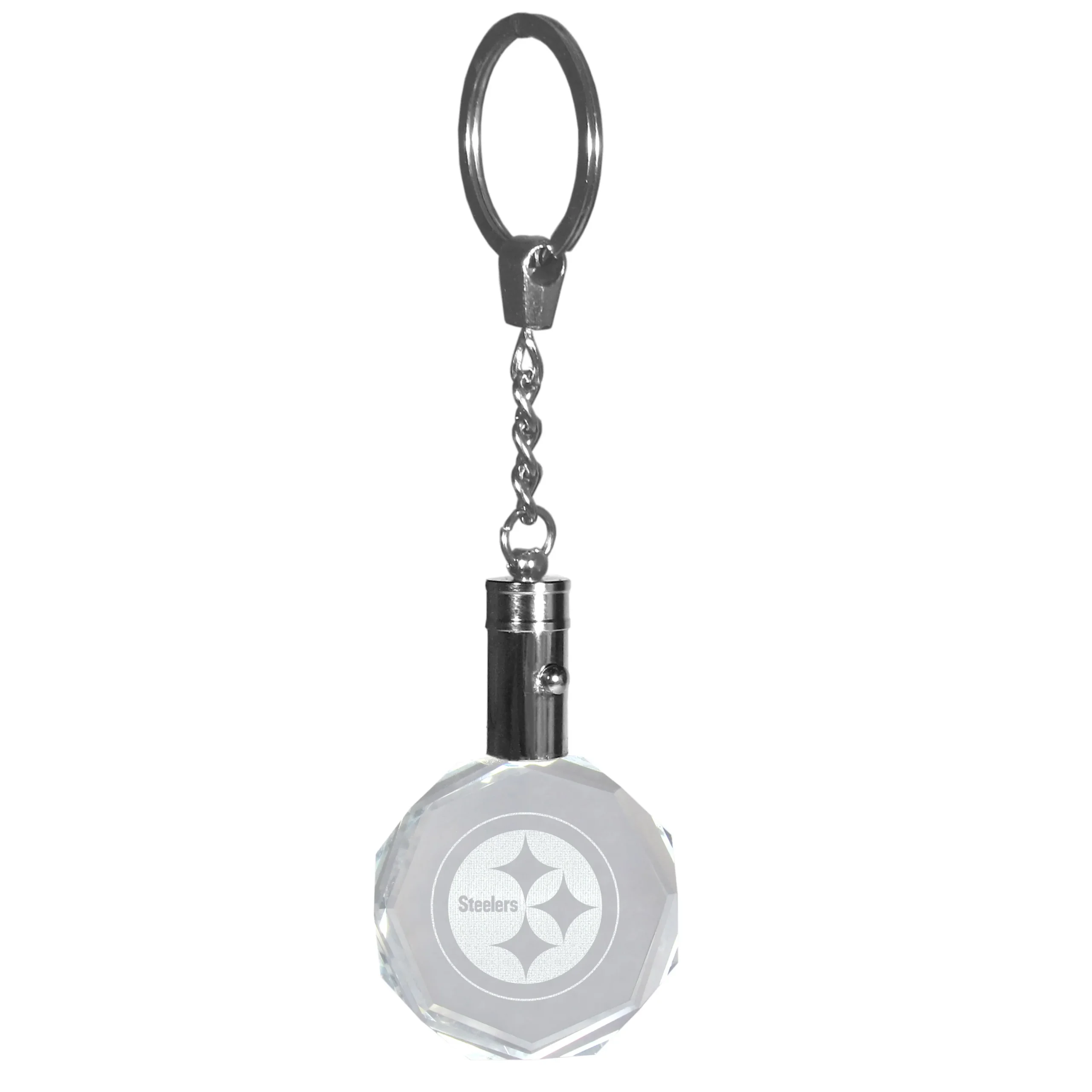 This beautiful crystal key chain has a laser etched Pittsburgh Steelers logo in the center that is eye-catching on it’s own but this has the added benefit of light! Push the button on the side and the entire beveled crystal fob lights up showing off the logo is great detail.