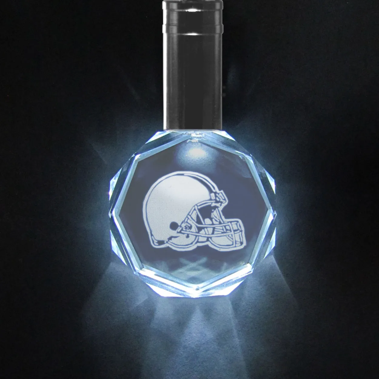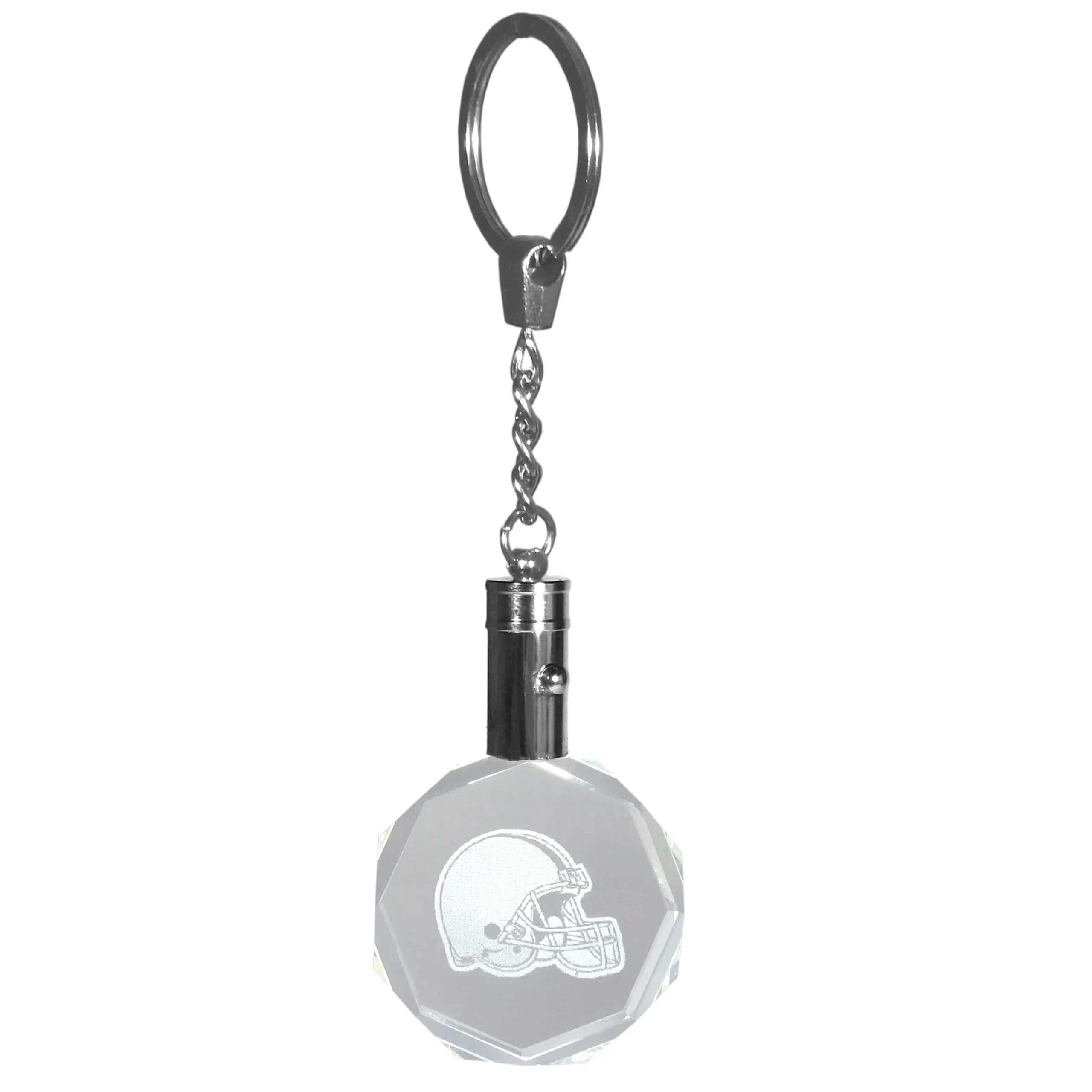 This beautiful crystal key chain has a laser etched Tampa Bay Buccaneers logo in the center that is eye-catching on it’s own but this has the added benefit of light! Push the button on the side and the entire beveled crystal fob lights up showing off the logo is great detail.