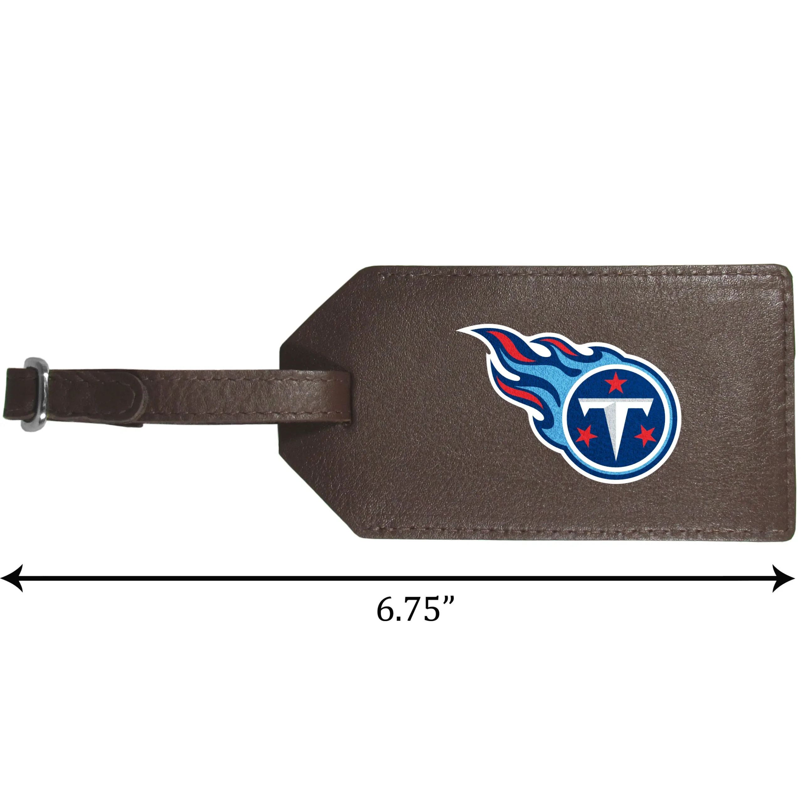 Everyone has had that moment at the airport of trying to find your suitcase among the sea of luggage. This quality leather luggage tag takes the frustration out of that process by providing an easy to spot tag that is attractive and shows off your team pride. The soft leather tag has a slide-up address tab and bright digitally printed Tennessee Titans logo. This is the perfect travel accessory for the die-hard fan!