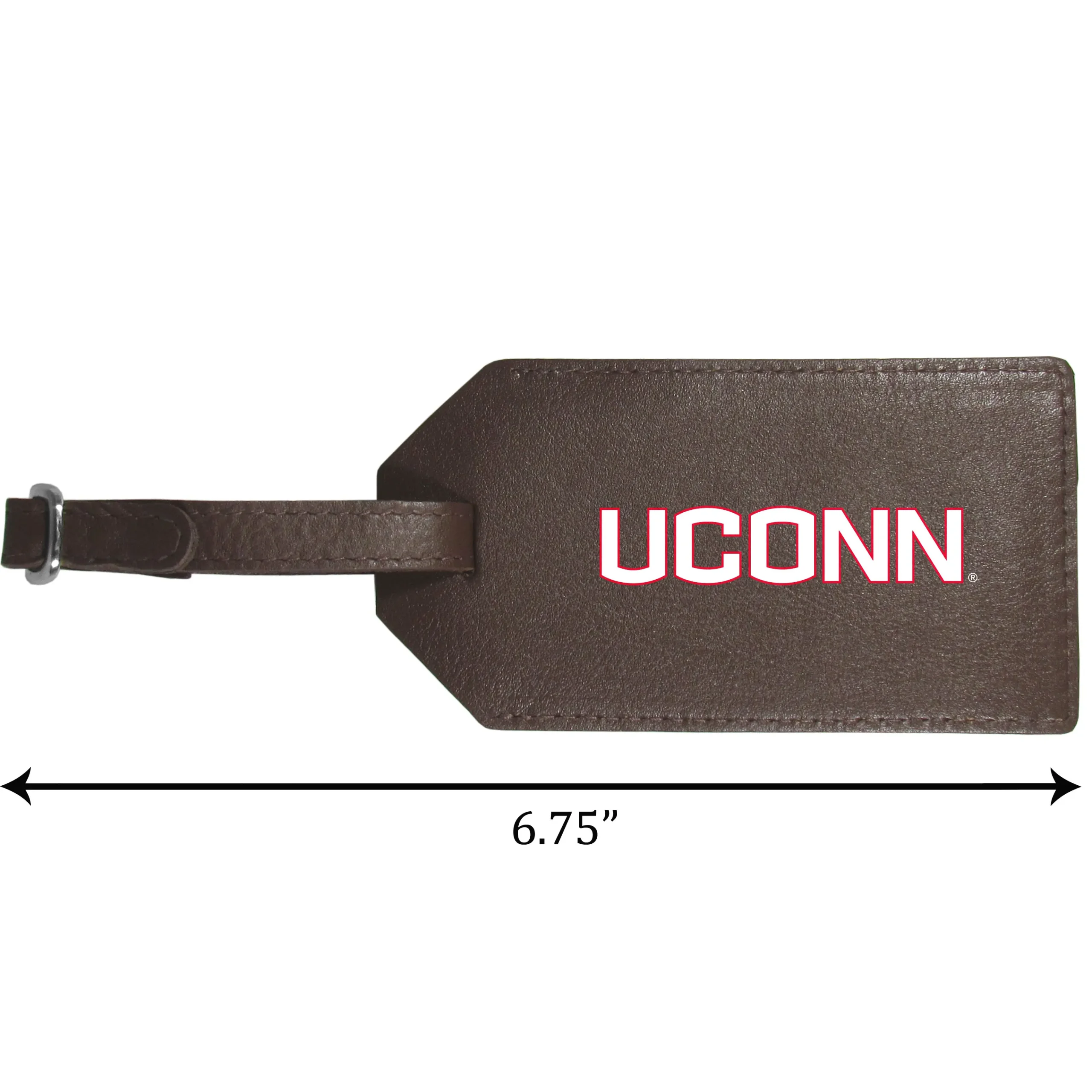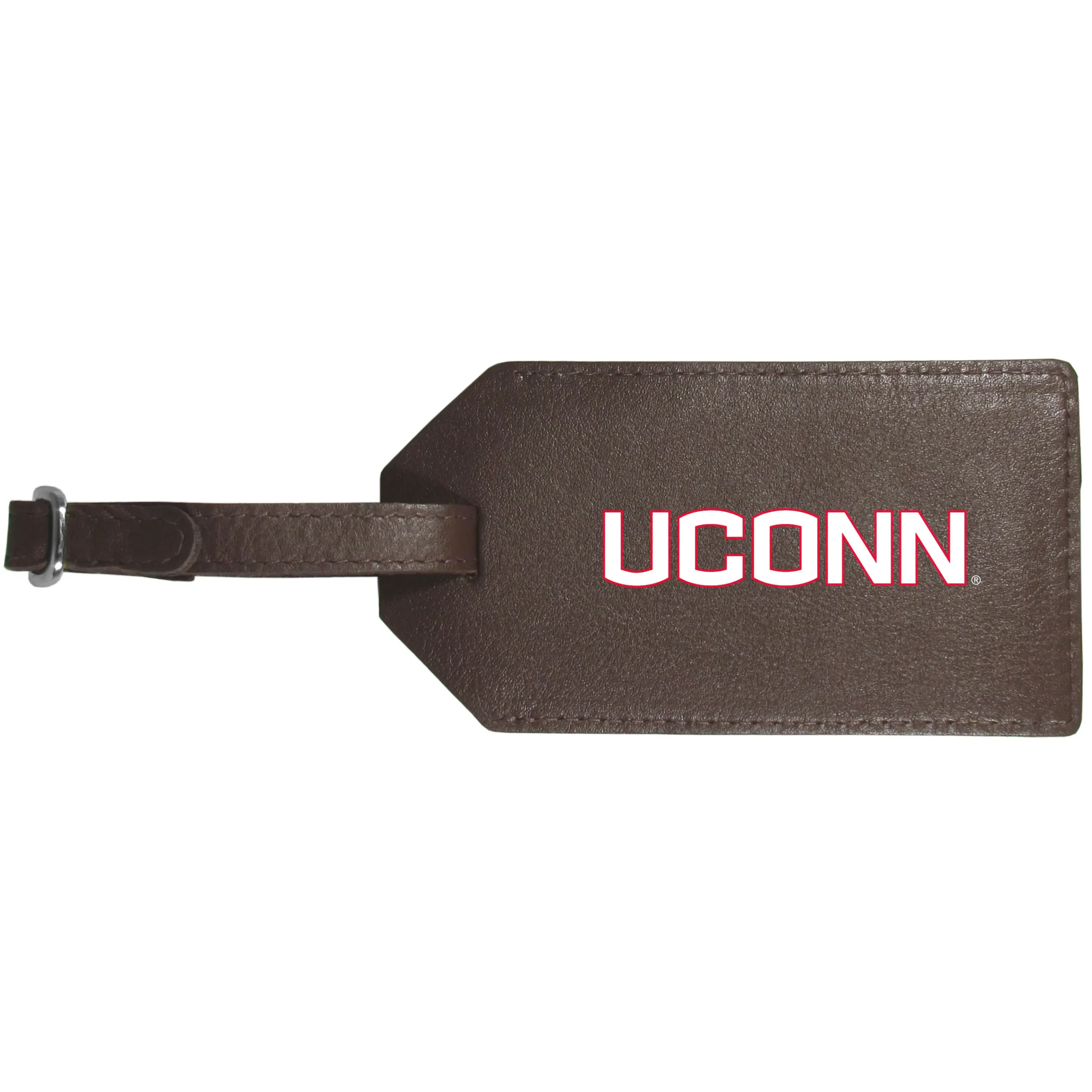 Everyone has had that moment at the airport of trying to find your suitcase among the sea of luggage. This quality leather luggage tag takes the frustration out of that process by providing an easy to spot tag that is attractive and shows off your team pride. The soft leather tag has a slide-up address tab and bright digitally printed UCONN Huskies logo. This is the perfect travel accessory for the die-hard fan!